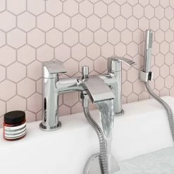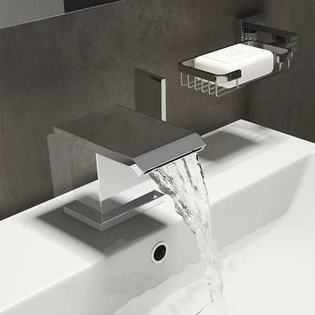 A stylish modern waterfall tap package, the glacier tap is part of our range of designer bathroom taps. Features a minimalist square body with matching sleek lever handles and a waterfall effect spout. Manufactured from solid brass with a shiny chrome finish. It’s contemporary design will bring a touch of sophistication to your bathroom.