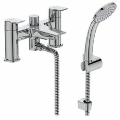 The Tesi 2 Hole Dual Control Bath Shower Mixer has clean geometric lines combining round and angular shapes. Designed to complement Tesi ceramics, they also match numerous other suites. This bath shower mixer is suitable for use in low and high pressure systems and comes supplied with brass backnuts. Includes shower handset and hose.