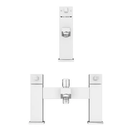Add a contemporary feel to your bathroom with the angular, cubic design of this Prime Modern Chrome Basin and Bath Shower Mixer Pack. The chrome mixer taps are crafted from brass for lasting durability, plus are easy to install on the deck of your sink and bathtub. This bath and basin tap set also includes a shower kit with a narrow handset well suited to targeted tasks such as cleaning and washing hair β plus it comes with a waste for your basin. Combine the pack with the square Milan Slim Rainfall Shower Head for a splash of luxury.
